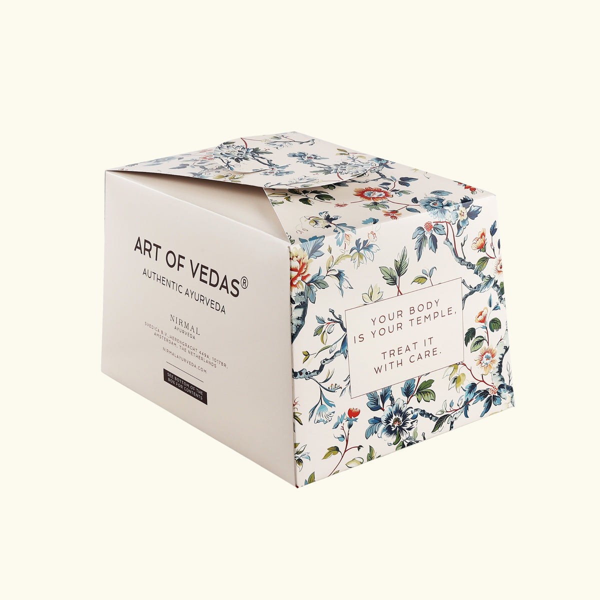 After cleansing & toning, take a small amount of Ayurvedic Face Cream and massage gently using upward strokes, on the face and neck.