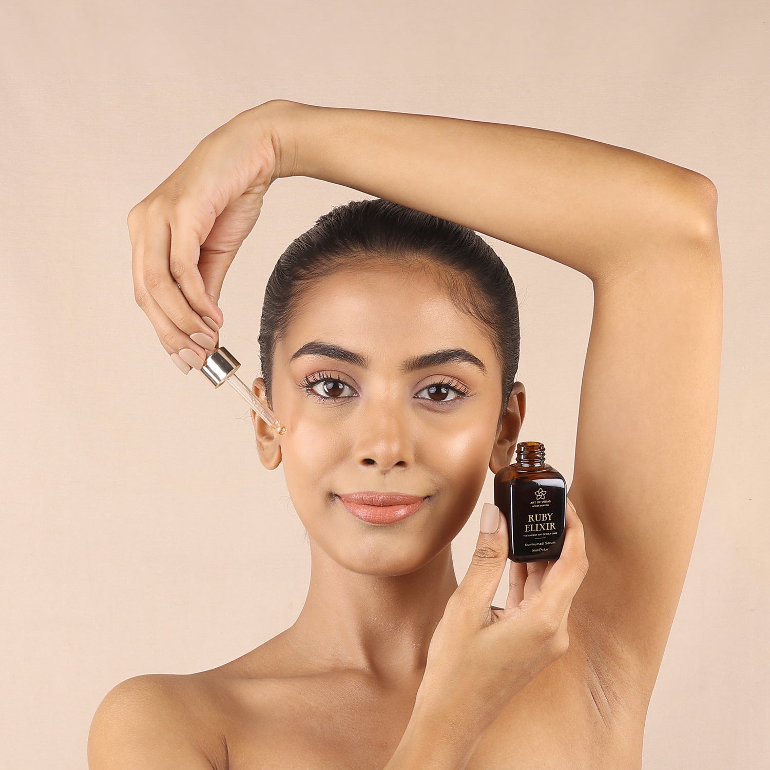 - Ruby Elixir Kumkumadi Serum (30ml): A luxurious blend of saffron and Ayurvedic herbs to enhance radiance, improve skin texture, and promote an even tone.