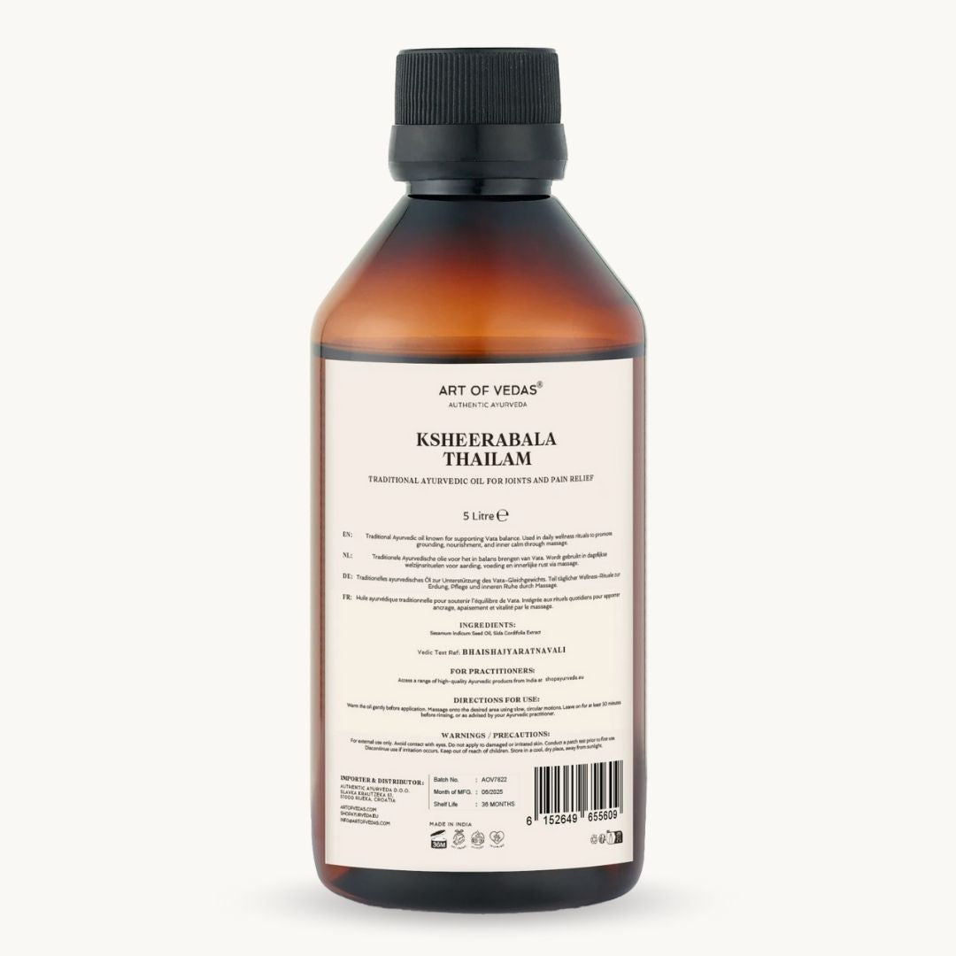 A Ksheerabala Thailam egy klasszikus ayurvédikus készítmény, amely híres hatékonyságáról az idegrendszeri problémák és ízületi fájdalmak kezelésében. Ez a terápiás olaj tej és Bala (Sida cordifolia) keverékéből készül, amelyet szezámolajban dolgoznak fel, és amelyek szinergikusan táplálják és erősítik az idegrendszert, enyhítik a fájdalmat és csökkentik a gyulladást. Különösen hasznos azok számára, akik neuromuszkuláris rendellenességekben, ízületi gyulladásban és szorongásban szenvednek, elősegítve a relaxációt és a jobb mozgékonyságot.