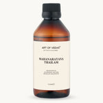 Enhetspris €115,00 per lTillverkad med rena ekologiska ingredienser och traditionella ayurvediska tekniker, säkerställer vår småskaliga produktion styrka och renhet. Den erbjuder lugnande värme och lindring, främjar balans och komfort över alla doshor, med särskild betoning på att lugna vata.